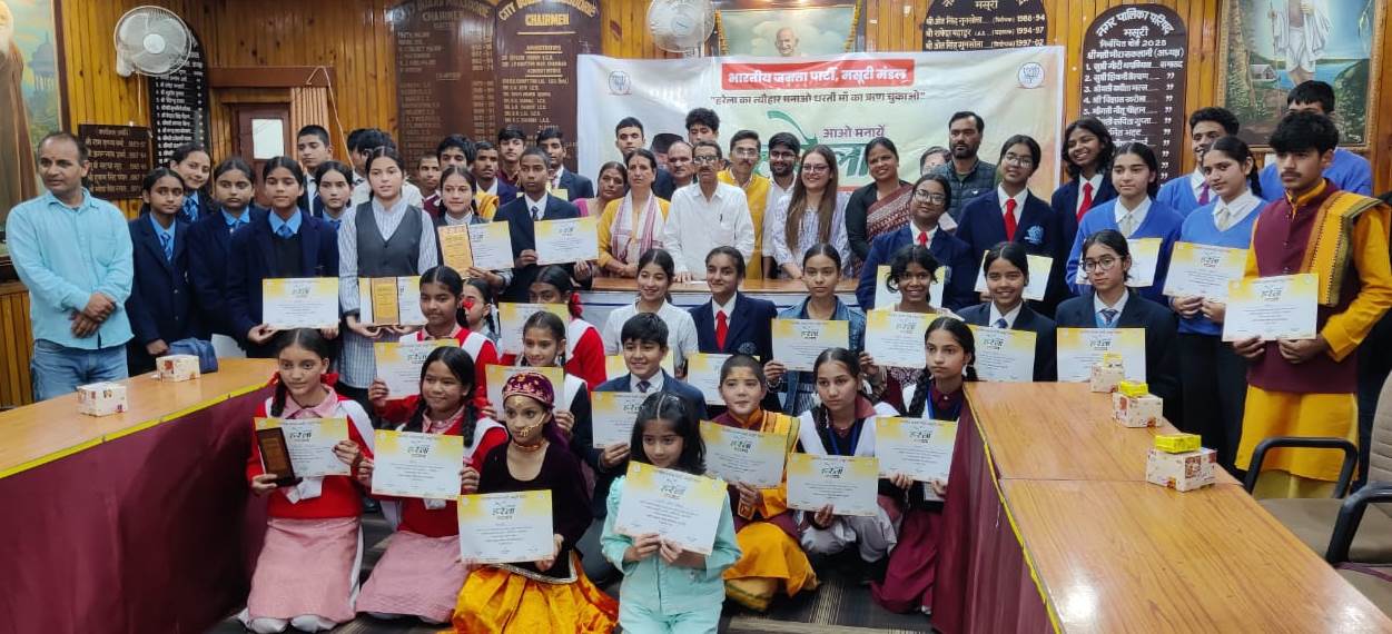 नगर पालिका सभागार में आयोजित कविता पाठ प्रतियोगिता में अधिकतर छात्रों व छात्राओं ने हरेला पर स्व रचित कविताओं को पाठ किया, जबकि चित्रकला प्रतियोगिता का विषय भी हरेला था जिस पर छात्र छात्राओं ने बहुत ही सुंदर व प्रेरणा दायक चित्र बनाकर पर्यावरण के प्रति संदेश देने का कार्य किया। कविता पाठ प्रतियोगिता में महात्मा योगेश्वर सरस्वती शिशु विद्यामंदिर की छात्रा अस्मिता नौटियाल ने पहला, सीजेएम वेवरली की अनुष्का तिवारी ने दूसरा व मसूरी गर्ल्स इंटर कालेज की सोनाशी उनियाल ने तीसरा स्थान हासिल किया जबकि चित्रकला प्रतियोगिता में आरएन भार्गव इंटर कालेज के अमित कुमार ने पहला, सरस्वती शिशु विद्यांमंदिर की पायल नेगी ने दूसरा व निर्मला इंटर कालेज की श्रद्धा ने तीसरा स्थान हासिल किया। प्रतियोगिता के मुख्य अतिथि उत्तराखंड राज्य आंदोलनकारी सम्मान परिषद के उपाध्यक्ष सुभाष बडथ्वाल ने विजेताओं को पुरस्कार वितरित किए व कहा कि हरेला के पर्व पर जो कार्यक्रम रखा गया था वह बहुत उत्कृष्ट था छात्र छात्राओं ने जो कविताएं पढी जो स्व रचित थी बहुत ही सुंदर कविताएं प्रस्तुत की। उन्हांने कहा कि बच्चे इतना अच्छा सोचते है मै हतप्रभ हूं कि पर्यावरण के किसी भी क्षेत्र को नहीं छोडा। उन्होंने कहा कि समाज से जुडे लोग ऐसे कार्यक्रमों में आये व बच्चों से सीखने का प्रयास करें, इससे समाज, राजनीति, व्यापार, राजनीति व सरकारी सेक्टर का भला होगा। उनके अनुभवों को सांझा करें ऐसे कार्यक्रम में अधिकारी, नेता, व्यापारी, डाक्टर इंजीनियर आये व बच्चों को प्रोत्साहित न करे बल्कि उनसे प्रेरणा ले, उन्होने कहा कि शुभ विश्नोई लगातार पर्यावरण के क्षेत्र में अच्छा कार्य कर रहे है वहीं भाजपा मंडल अध्यक्ष रजत अग्रवाल का विशेष आभार है कि वह ऐसे कार्यक्रम कर रहे हैं। इस मौके पर कार्यक्रम संयोजक शुभ विश्नोई ने कहा कि भाजपा मसूरी मंडल व रोबुस्ट वर्ल्ड हरेला पर्व केवल 16 जुलाई को नहीं बल्कि पूरे जुलाई व अगस्त में मना रहे है व विभिन्न कार्यक्रमों का आयोजन कर रहे हैं, इस प्रतियोगिता में मसूरी के प्रमुख स्कूलों ने प्रतिभाग किया, इस प्रतियोगिता से अगर एक प्रतिशत बच्चे भी इससे प्रेरणा लें तो पर्यावरण संरक्षण में बडा कार्य होगा। प्रतियोगिता में सेंट क्लेयर्स, मसूरी पब्लिक स्कूल, सनातन धर्म गर्ल्स इंटर कालेज, आरएन भार्गव इंटर कालेज, मसूरी गर्ल्स इंटर कालेज, सरस्वती शिशु विद्यामंदिर, सनातन धर्म संस्कृत महाविद्यालय, सीजेएम हेंपटन कोर्ट, निर्मला इंटर कालेज, सीजेए वेवरली के प्रतिभागियों ने भाग लिया। प्रतियोगिता में निर्णायक की भूमिका डा. शोबित केशववाल ने निभाई। कार्यक्रम का संचालन शगुन विश्नोई ने किया। इस मौके पर भाजपा मंडल उपाध्