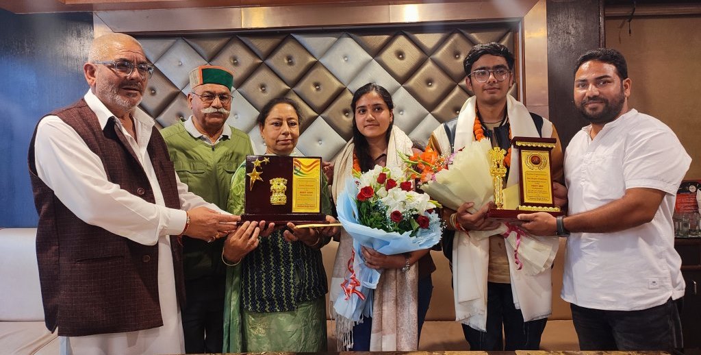 नीट परीक्षा पास करने वाले देव आर्यन चौहान व सानिया बडियारी को सम्मानित किया।