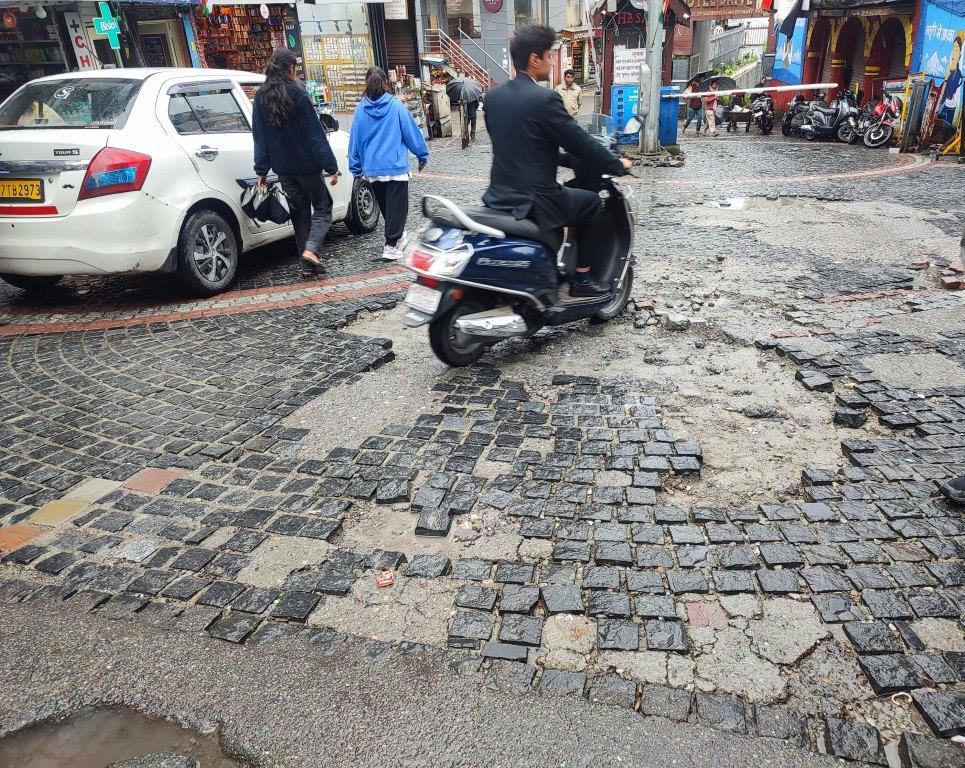 मसूरी। लगातार हो रही बारिश से मसूरी की लगभग सभी सडकें क्षतिग्रस्त हो चुकी है लेकिन मालरोड के मुख्य चौक शहीद भगत सिंह चौक की हालत बहुत खराब है। रोड के पत्थर उखड़ चुके है व गढढे बन गये है जिससे आये दिन स्कूटी सवार दुर्घटना का शिकार हो रहे हैं वहीं पैदल चलने वाले भी गढढों में पैर आने पर चोटिल हो रहे है, लेकिन लोक निर्माण विभाग की नींद नहीं खुल रही। विगत दिनों लगातार दबाव बनाये जाने पर लोक निर्माण विभाग ने गढढे भरे थे लेकिन यह मरम्मत कुछ ही दिन में क्षतिग्रस्त हो गयी व अब तो रोड पर बडे गढढे पड़ गये है। लगातार दुर्घटनाएं होने के बाद भाजपा मसूरी मंडल के अध्यक्ष रजत अग्रवाल ने कड़ी प्रतिक्रिया व्यक्त कर आंदोलन की चेतावनी दी थी जिस पर लोक निर्माण विभाग के अधिशासी अभियंता जितेंद्र त्रिपाठी मसूरी आये व उन्होंने एक सप्ताह में गढढों को भरने व पत्थरों की मरम्मत करने का भरोसा दिया व उसी दिन कार्य भी शुरू किया गया लेकिन यह कार्य मालरोड के कुछ ही क्षेत्र में करने के बाद इतिश्री कर ली गयी व जहां अधिक गढढे है वहां पर कुछ नहीं किया जिससे लोगों में आक्रोश बढ रहा है। जबकि शहीद भगत सिंह चौक मसूरी आने वाले पर्यटकों का मुख्य चौक है और वहीं पर सड़की की दुर्दशा देखकर मसूरी की छवि धूमिल हो रही है।