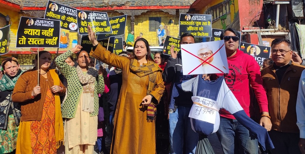 शहीद स्थल पर कांग्रेस नेत्री सोनिया आंनद के नेतृत्व में अंकिता हत्याकांड में भाजपा नेता दुष्यंत गौतम का पुतला दहन किया इस मौके पर अंकिता को न्याय दो, न्याय नही ंतो सत्ता नहीं, बेटी सुरक्षित नही ंतो देश सुरक्षित नहीं, अपराधियों की ढाल बनी सरकार, उत्तराखंड पूछ रहा है अंकिता को न्याय कब मिलेगा, अंकिता हम शर्मिदां है तेरे कातिल जिंदा है, व अंकिता हत्याकांड की सीबीआई जांच करो आदि नारे लगाये। इस मौके पर कांग्रेस नेत्री सोनिया आंनद रावत ने कहा कि अंकिता हत्याकांड के मामले में भाजपा की बडी नेत्रियां है व पदों पर है वह चुप क्यों है, कहा कि अगर वह बीजेपी में होती तो वह सबसे पहले आके बोलती व न्याय मांगती। भजापा अपने नेताओं को बचाने का कार्य कर रही है। उन्होंने कहा कि अब परदा उठ चुका है इसके बाद बीजेपी के पास कोई जवाब नहीं है, जो विरोध कर रहा उनपर बदले की भावना से कार्य कर दबाव बनाया जा रहा है। उन्होंने कहाकि वह मसूरी के शहीद स्थल से घोषणा करती हूं कि अपनी वीरांगना बेटी को न्याय दिलाने के लिए यात्रा शुरू कर रही है कि उसे न्याय दो व गुटटू को सलाखों के पीछे भेजो। उन्होंने कहाकि प्रदेश के मुख्यमंत्री जो धृतराष्ट्र बने बैठे है उस यात्रा में अंकिता को न्याय की मांग रहेगी मुख्यमंत्री जो आंखो पर पटटी बांध के बैठे है उसे हटायें अभी उत्तराखंड की वीरांगनाएं बेटियां व महिलाएं जिंदा है, मैने अपने संघर्ष की धार तेज कर दी है व अब इसमें बहुत सारे खुलासे किए जायेंगे। वीवीआईपी गटटू को पूरा देश जान चुका है, जिस तरह से अंकिता बेटी जिसे वीरांगना घोषित किया है वहीं तीलू रौतेली के नाम से एक मुहिम शुरू कर रही हूं जब तक न्याय नहीं मिलता चुप नहीं बैठा जायेगा व बेटियों को सुरक्षित रहने का बीड़ा उठाया है। उन्होंने कहा कि जिस तरह के बाते सामने आयी हैं उसे पूरा देश देख रहा है सोशल मीडिया पर उसकी बात हो रही है। इस मौके पर पूर्व सभासद दर्शन रावत, पूर्व शहर कांग्रेस अध्यक्ष गौरव अग्रवाल, सहित बड़ी संख्या में पटरी व्यापारी महिलाएं व पुरूष मौजूद रहे।