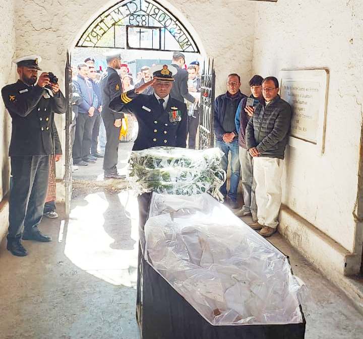 पदमश्री ह्यू गेंजर को पूरे सैन्य सम्मान के साथ अतिंम विदाई दी। फोटो कैप्शन अंतिम संस्कार के लिए जाते हुए मसूरी